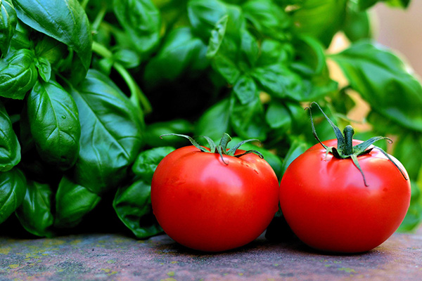 • Paradicsom és bazsalikom: A bazsalikom segít a paradicsom növekedésében és ízesítésében, emellett távol tartja a kártevőket.
